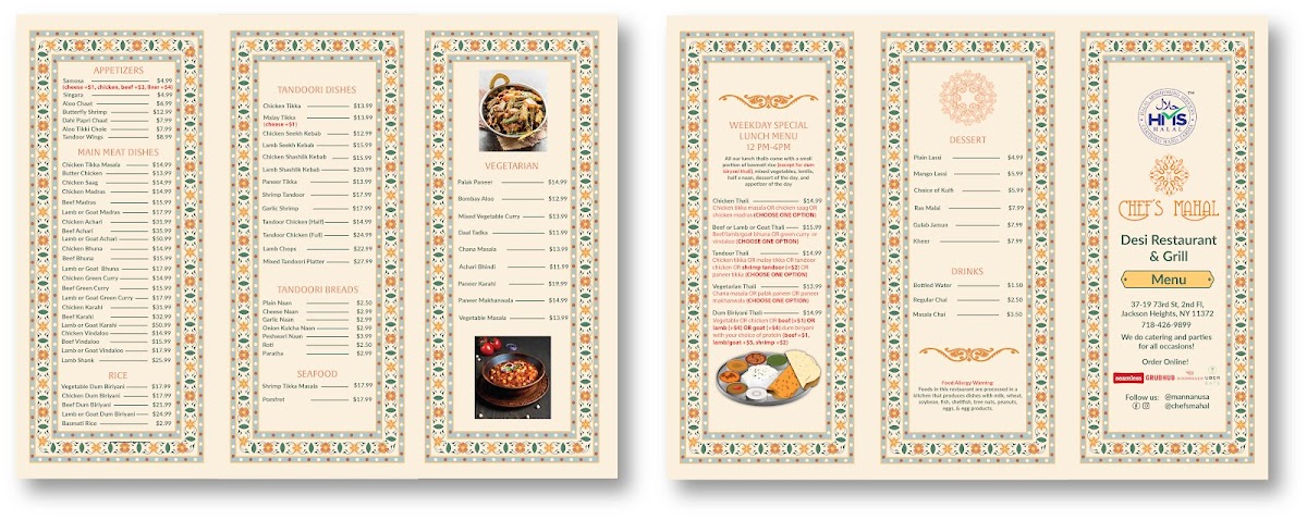 For reservations or inquiries, feel free to call +1 718-426-9899. Your unforgettable culinary journey awaits at Chef's Mahal-Mannan!